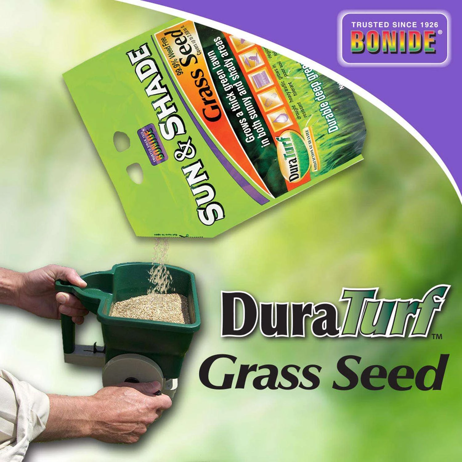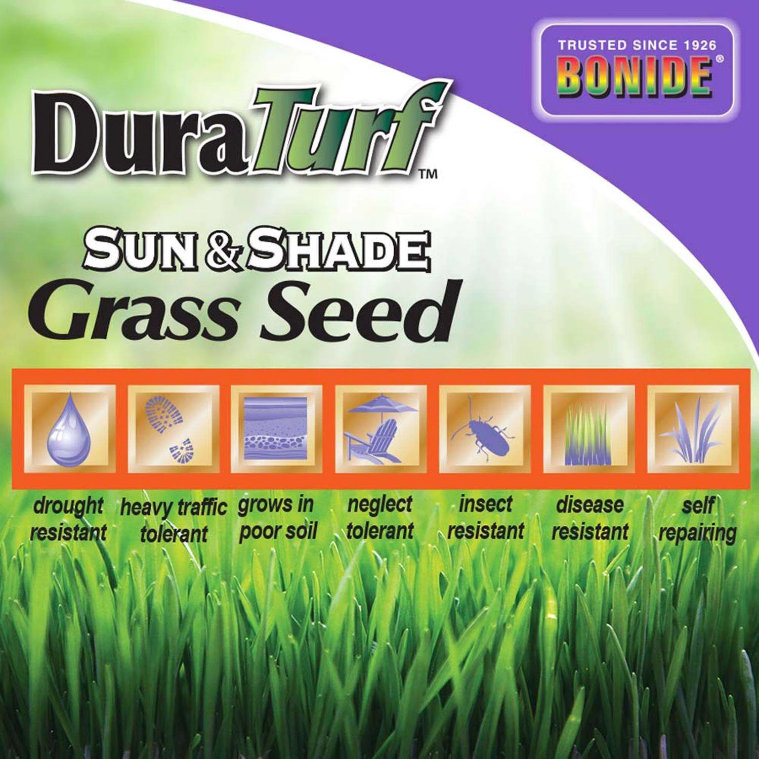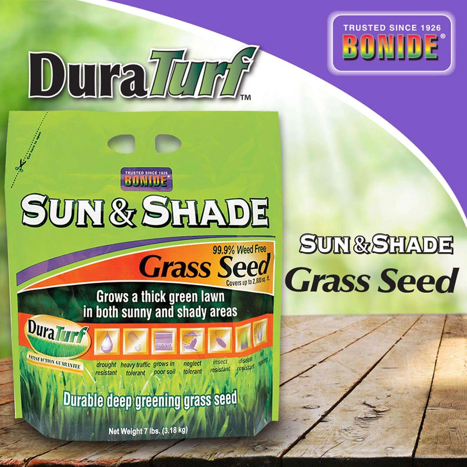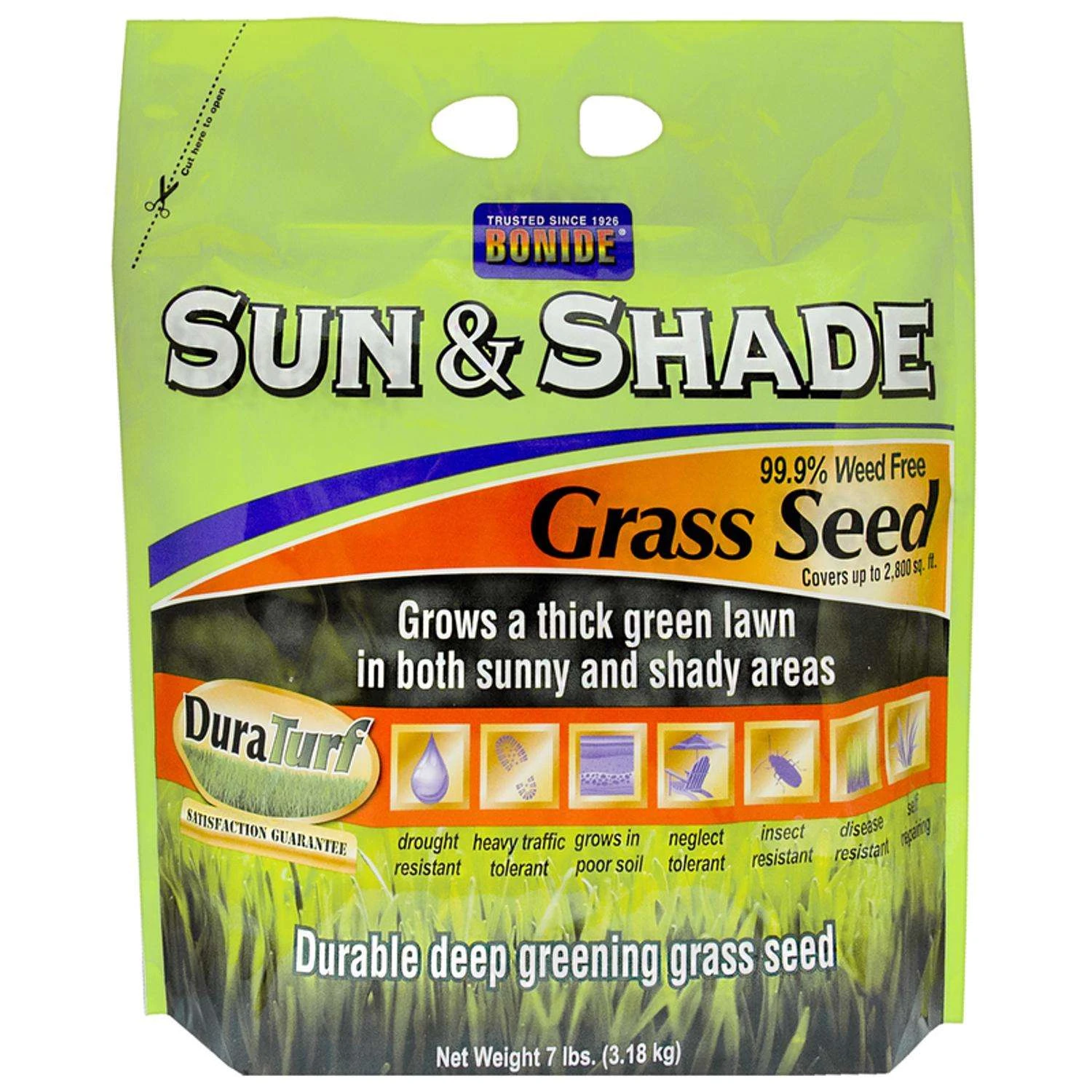 Bonide Sun & Shade Grass Seed is specially formulated for sun & shade. Quickly repair thin and bare spots in your yard. Grass seed even works in areas with poor soil. Grows a thick green lawn in both sunny and shady areas Specially formulated improved turf grass varieties for full sun or shade Spreads quickly to repair thin and bare spots specifications Grows in poor soil Insect & disease resistant 99.9 % weed free Durable and deep greening
