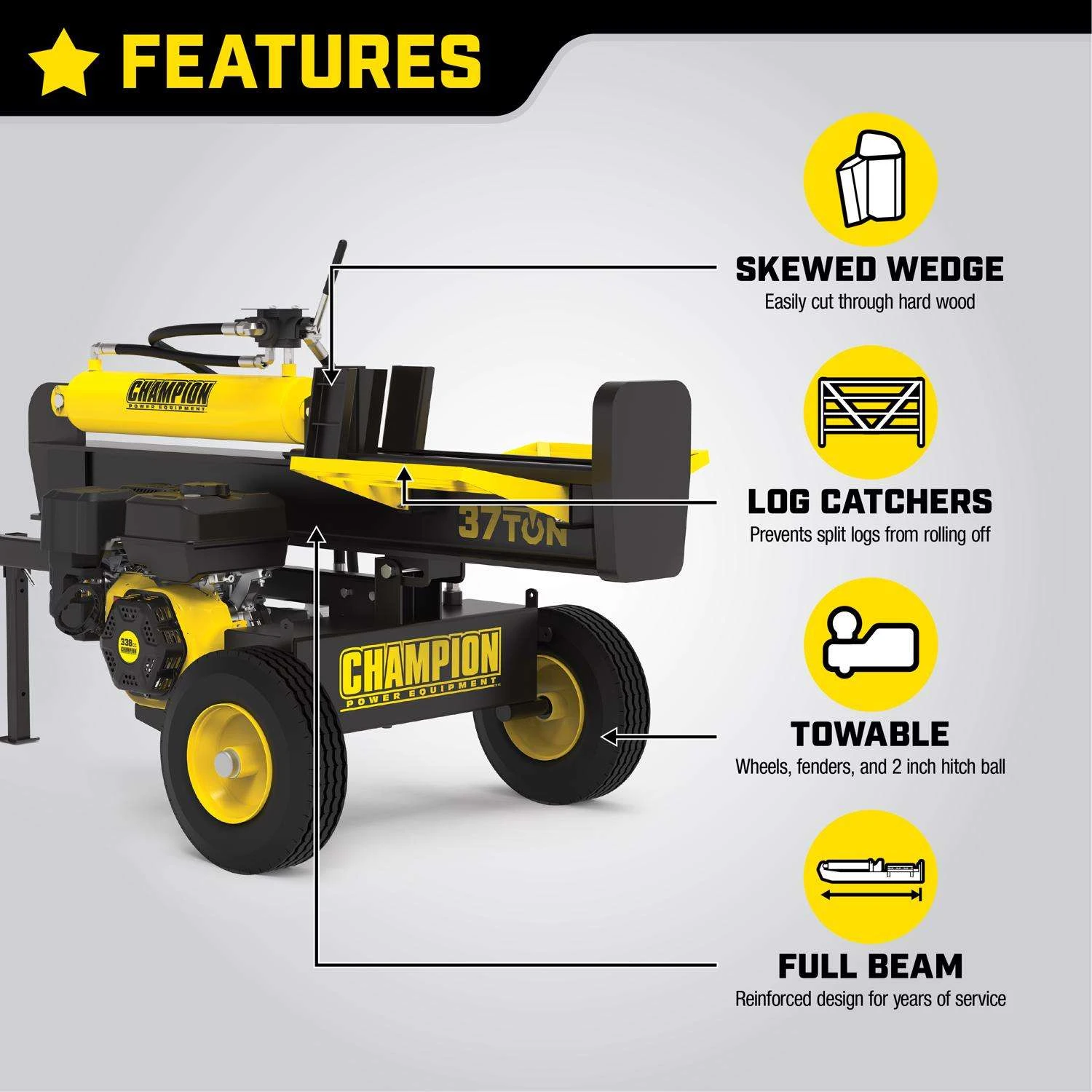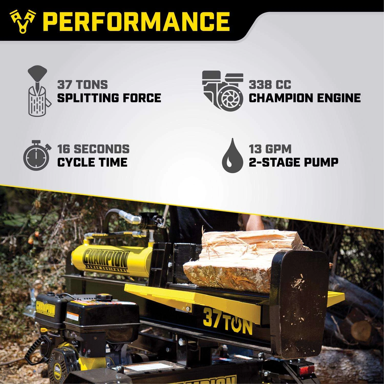 | Search Field | Champion 37 ton Gas 338 cc OHV Log Splitter Outdoor Power Equipment Wood Splitters SPLITTERS/SHREDDERS/CLEAN LOG SPLITTER CHAMPION POWER EQUIPMENT INC Champion |