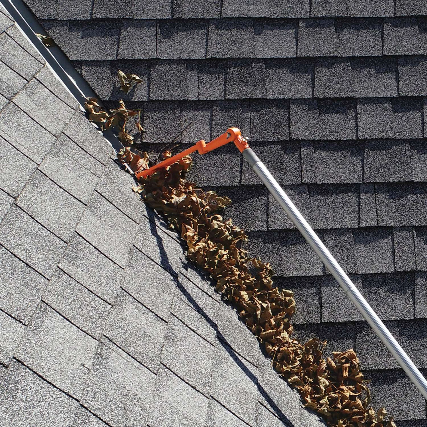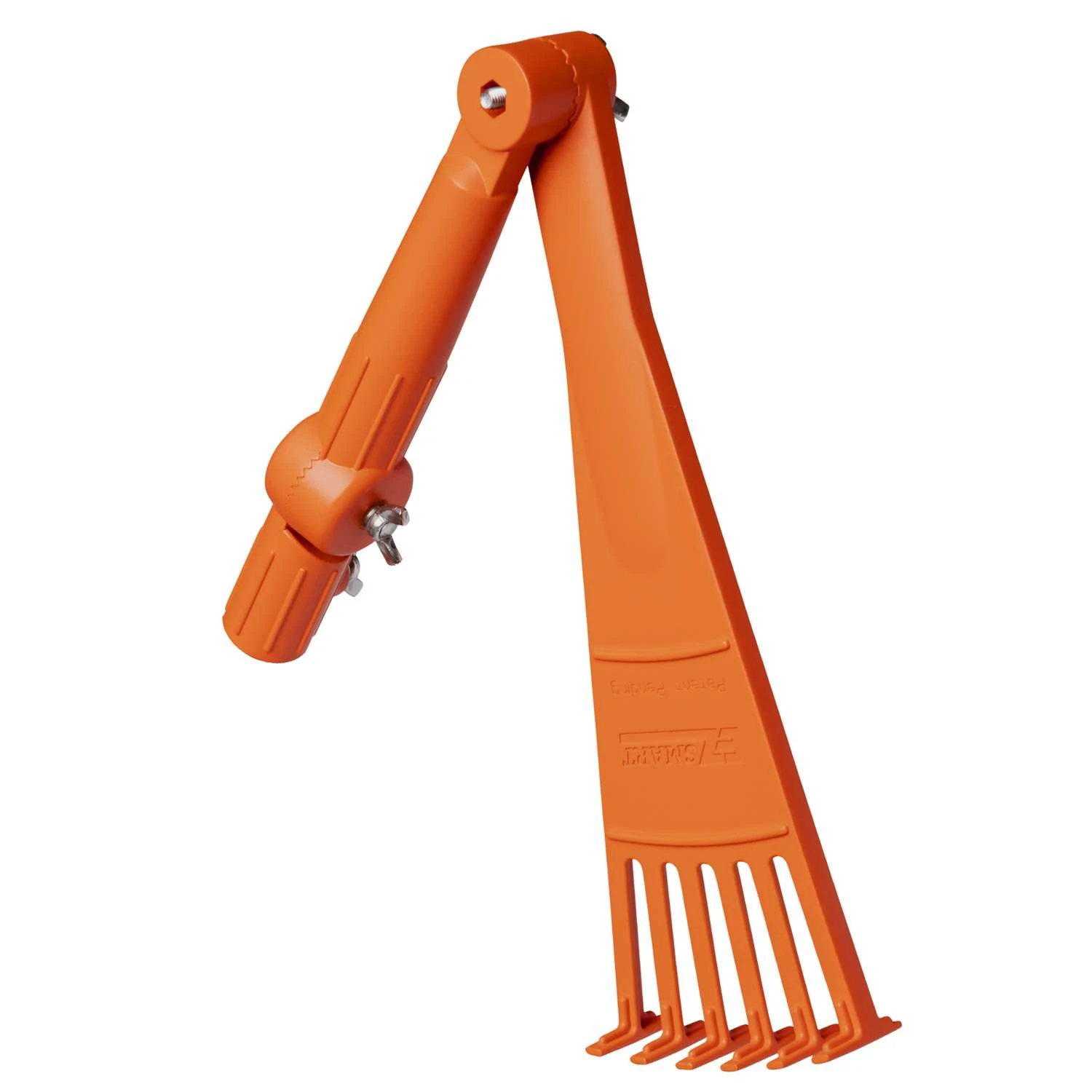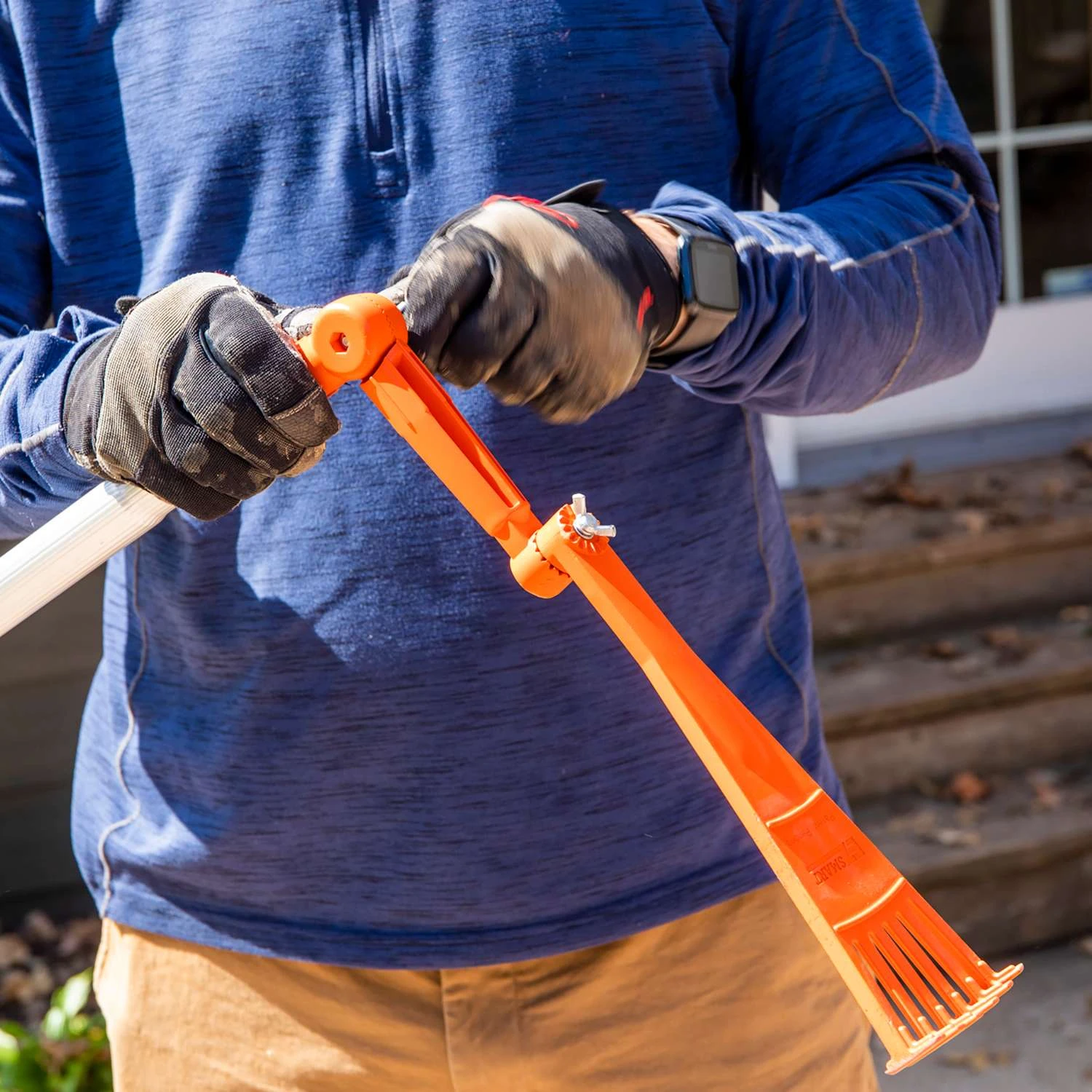 The EZ Smart Mini Rake is great for removing leaves and branches from roofs, gutters and other out-of-reach areas where debris accumulates. Fits the EZ smart extension pole or any extension pole with universal/standard US threading or 3/4 in. acme threading. Also works well in the garden, landscaping and other hard-to-reach places on the ground. Clean gutters without a ladder Dual adjustable joint system works in countless ways to access the hardest-to-reach areas Reach unreachable spots Pivoting head adjusts to multiple angles