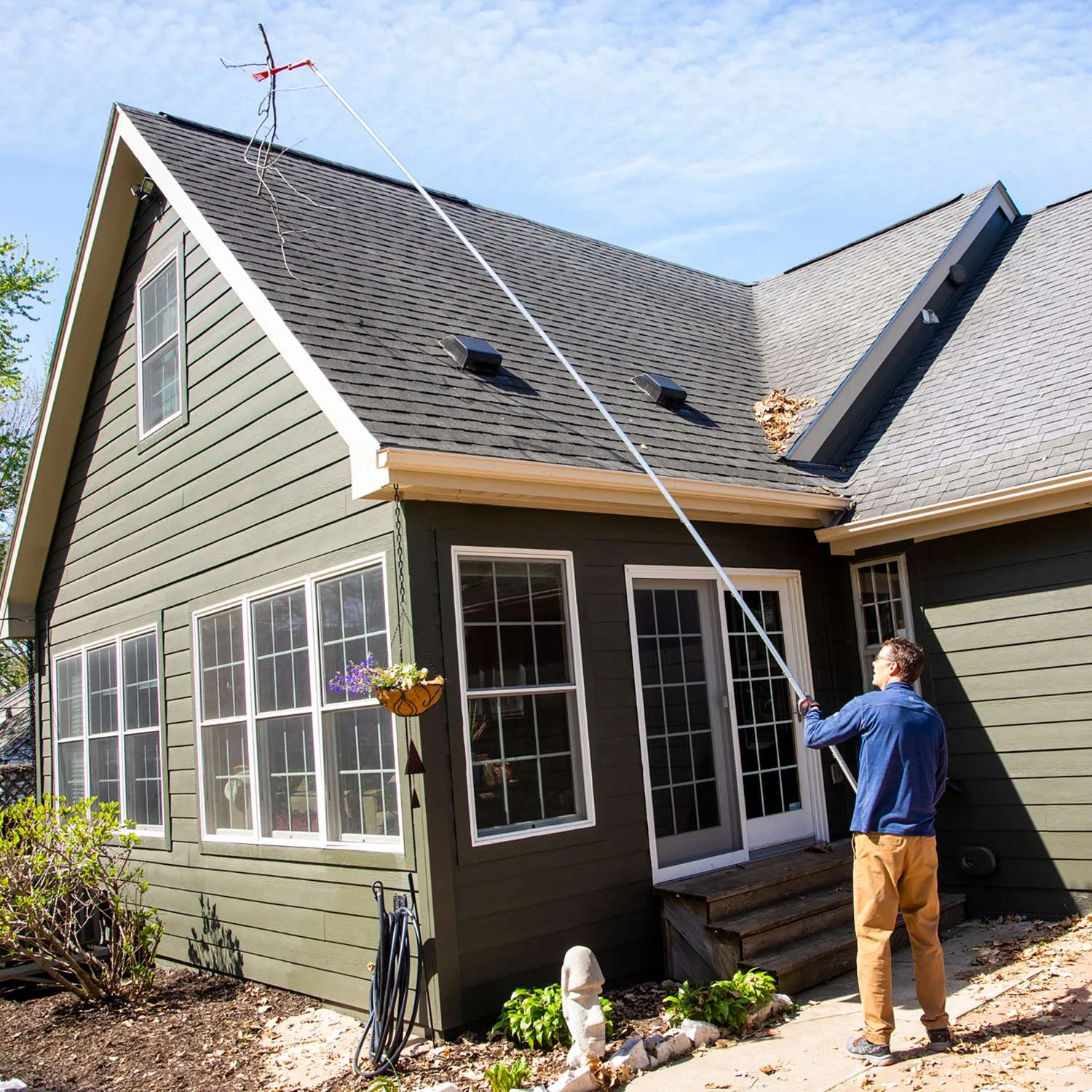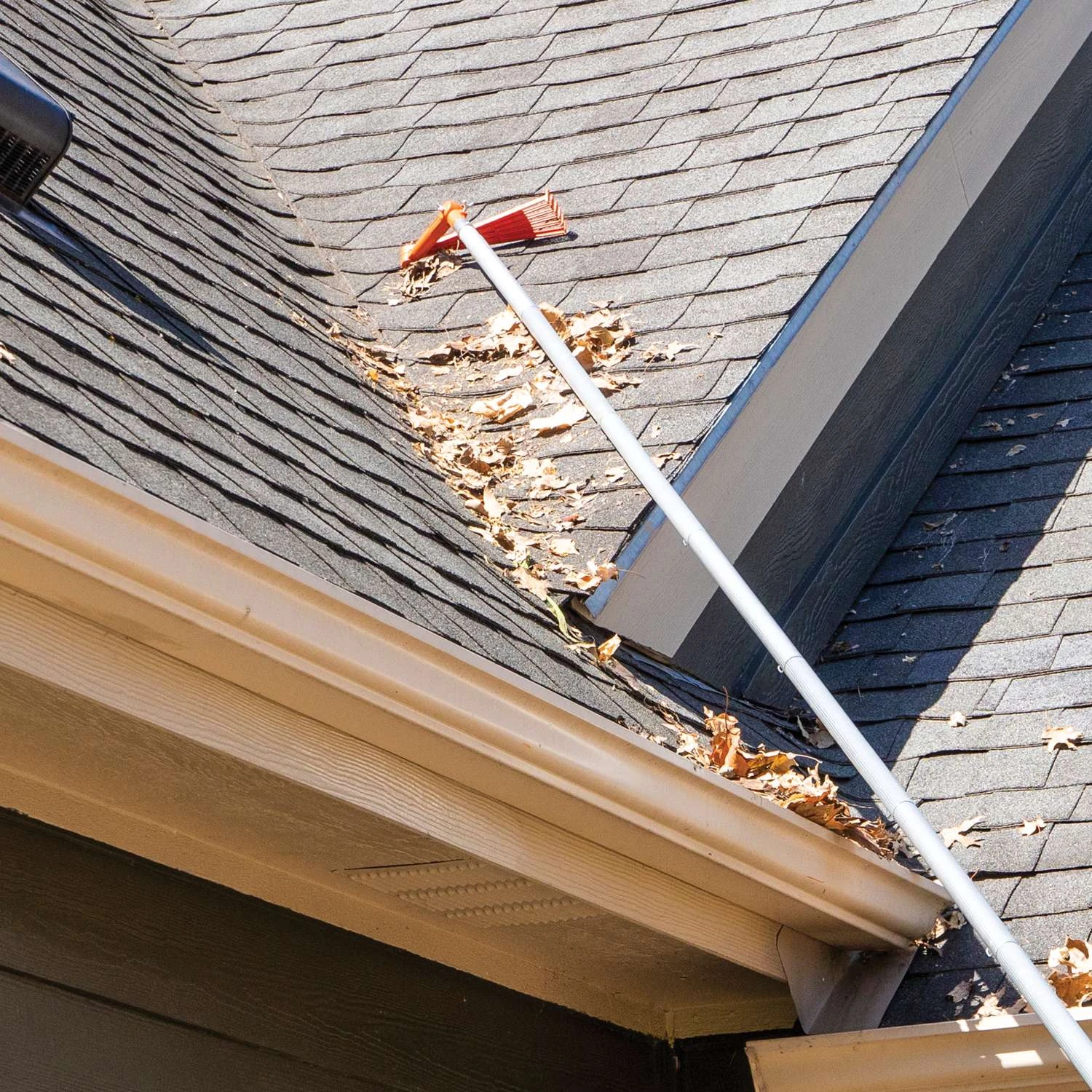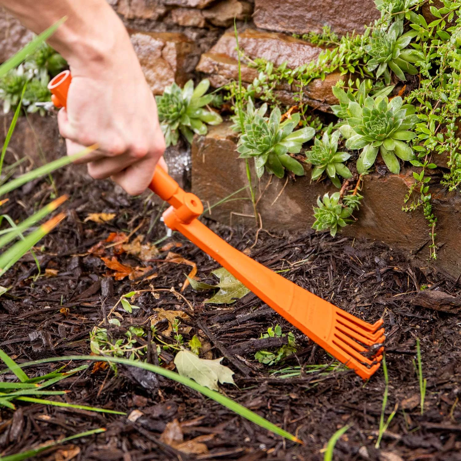 The EZ Smart Mini Rake is great for removing leaves and branches from roofs, gutters and other out-of-reach areas where debris accumulates. Fits the EZ smart extension pole or any extension pole with universal/standard US threading or 3/4 in. acme threading. Also works well in the garden, landscaping and other hard-to-reach places on the ground. Clean gutters without a ladder Dual adjustable joint system works in countless ways to access the hardest-to-reach areas Reach unreachable spots Pivoting head adjusts to multiple angles
