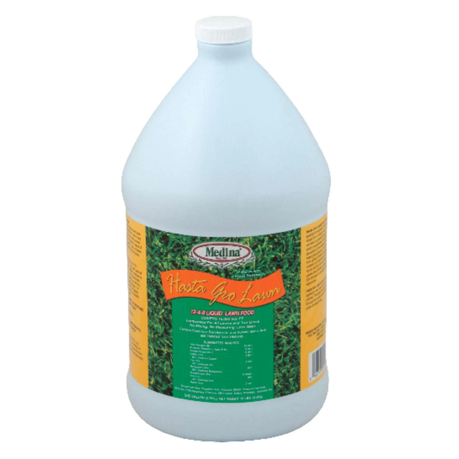 HastaGro 12-4-8 Liquid Lawn Food is like getting a lawn care kit in a bottle. With this convenient ready-mix formulation, just attach a garden hose to the container to treat an average lawn in 10 minutes. HastaGro Lawn Food contains a blend of quality, natural lawn food supplements plus Medina Soil Activator and Humate Liquid Humus. It’s great for a quick lawn green-up since the nutrients are absorbed by the leaves within minutes. Avoid the messes and chemical hazards of harsh fertilizers. Give your lawn a HastaGro Lawn Food treatment. Fast, efficient absorption More vigorous lawns from spring to fall Stimulates natural soil organisms Complete nutrient uptake for less fertilizer waste