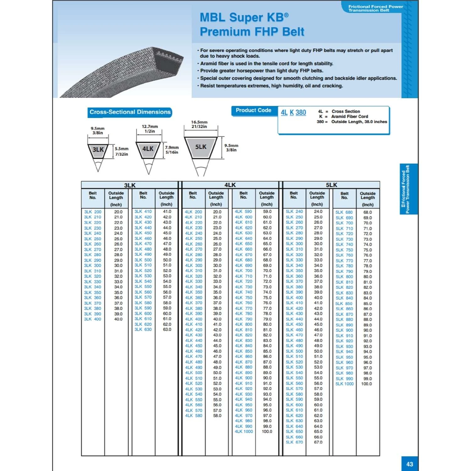 Mitsuboshi MBL Conventional V-Belt 0.66 In. W X 62 In. L For All Motors