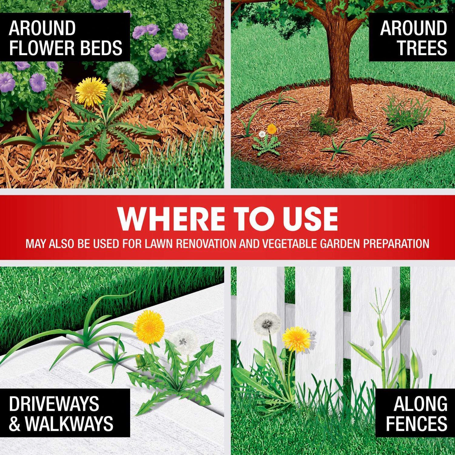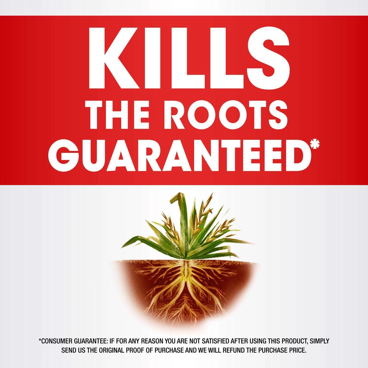 Great value for larger areas. Roundup brand products help you triumph over the toughest weeds and Roundup Concentrate Plus Weed & Grass Killer now features an easy measure cap that helps to make using concentrates easy to use. Roundup Concentrate Plus Weed & Grass Killer is perfect for use around shrubs and trees, on patios, walkways, driveways, gravel areas and mulch and along fences and foundations. Do Not Use for spot weed treatment after planting any fruits or vegetables. It is also ideal for large jobs including lawn replacements or garden plot preparation. For best results, add 6 fl. oz. of concentrate to one gallon of water. Use of a Roundup brand sprayer is recommended. The formula is rainproof in 30 minutes and with FastAct Technology, you will see visible results in as fast as 9 hours. Kill the toughest weeds and grasses to the root with Roundup Concentrate Plus Weed & Grass Killer. Kills tough weeds and grasses to the root Rainproof in 30 minutes FastAct® Technology – visible results in as fast as 9 hours For use around flowers, shrubs, and trees; on patios, walkways, driveways, gravel areas, and mulch beds; along fences and foundations; in large areas for lawn replacements or garden plot preparation Apply with a Roundup® brand tank sprayer